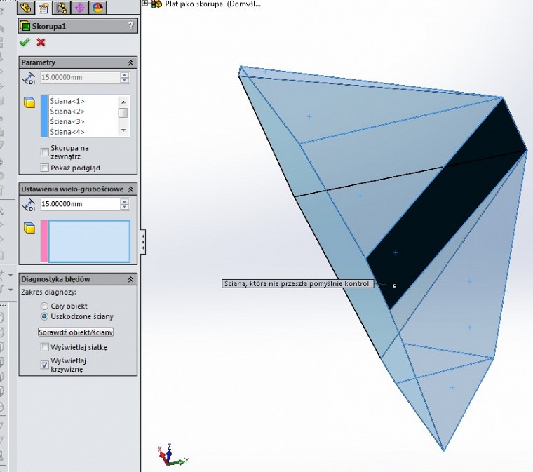 Witam Forum, mam utworzona bryle z ktorej chcialbym zrobic skorupe. Po zaznaczeniu scian bryly polecenie Skorupa generuje meldunek ze jedna ze scian nie przeszla pomyslnie kontroli. Pomoc SW poleca uzyc Polecenia Narzedzia->Sprawdz, ktorego w Menu Narzedzia nie ma :( (SW2014SP1) Bardzo prosze o pomoc lub wskazowki. Oryginal pliku : https://drive.google.com/file/d/0B0nxV5k1OdqETlkyV0lDLXdyekk/edit?usp=sharing Pozdrawiam Zbyszek |
