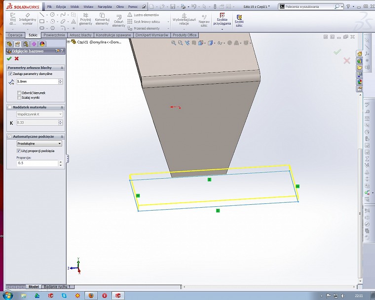 dziękuję, przedytowałem, powstał kolejny problem chciałem zrobić ttakie oto odgięcie http://ifotos.pl/zobacz/Snap1jpg_narprxs.jpg/ wykonałem to odgięciem krawędzi i chciałem wykorzystać opcje i chciałem to poszerzyć ale wyskakuje błąd, zmniejszyć mogę, nie ma problemu ale poszerzyć juz nie, jak to wykonać? |
