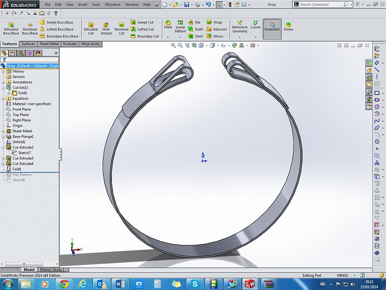 Merta Tomasz Pieknie Arek, ale po lewej stronie nie przelozysz sruby - cos tu nie gra. Bo sruba laczy te oba ucha.... Pozdr. tomek Zgadza się, jeden z otworów jest delikatnie przesunięty - poprawię to. Jednakże chodziło mi o zasade w jaki sposób buduje się taki model w sheet metal - w czym mi pomogłeś. Jeszcze raz dziękuję. Arek |